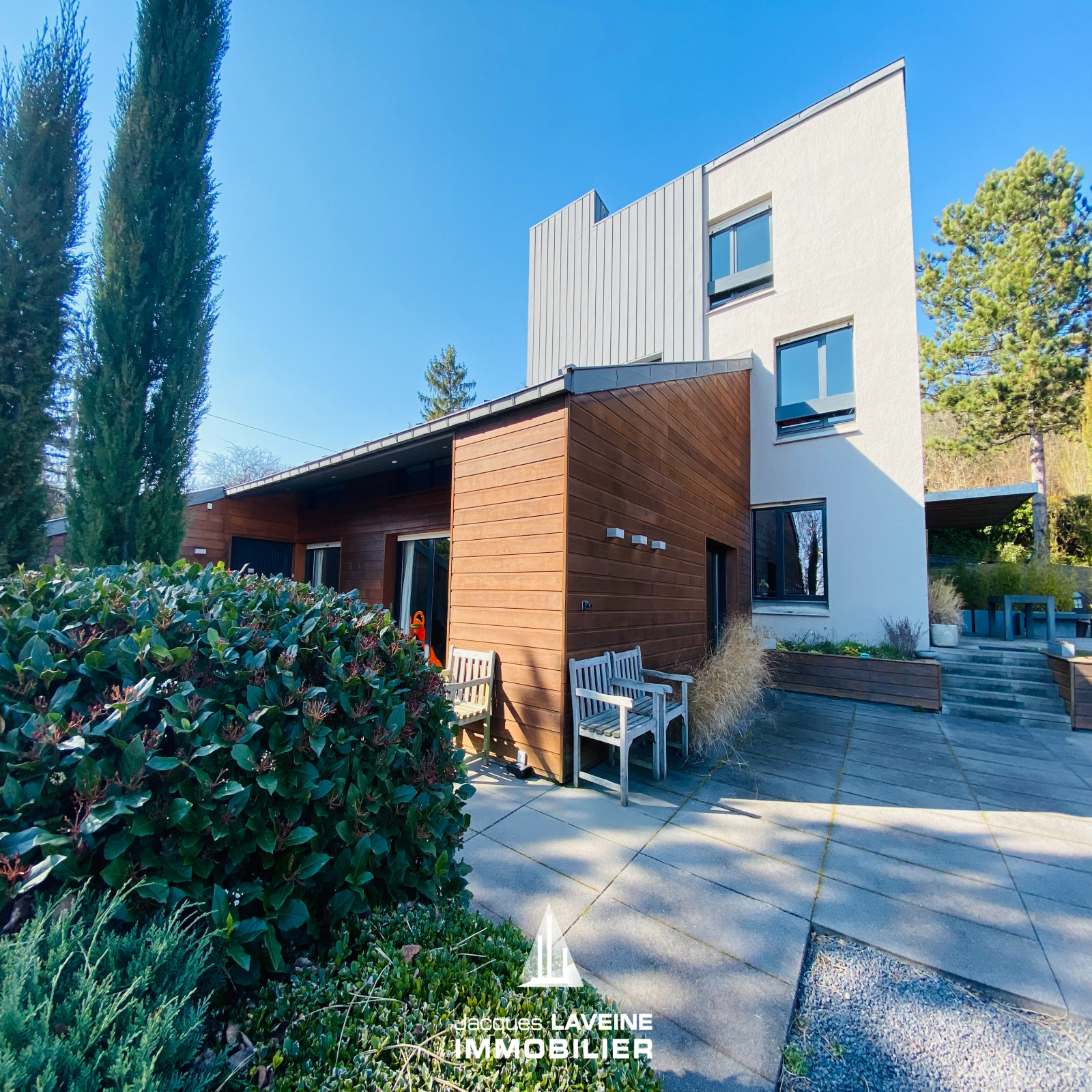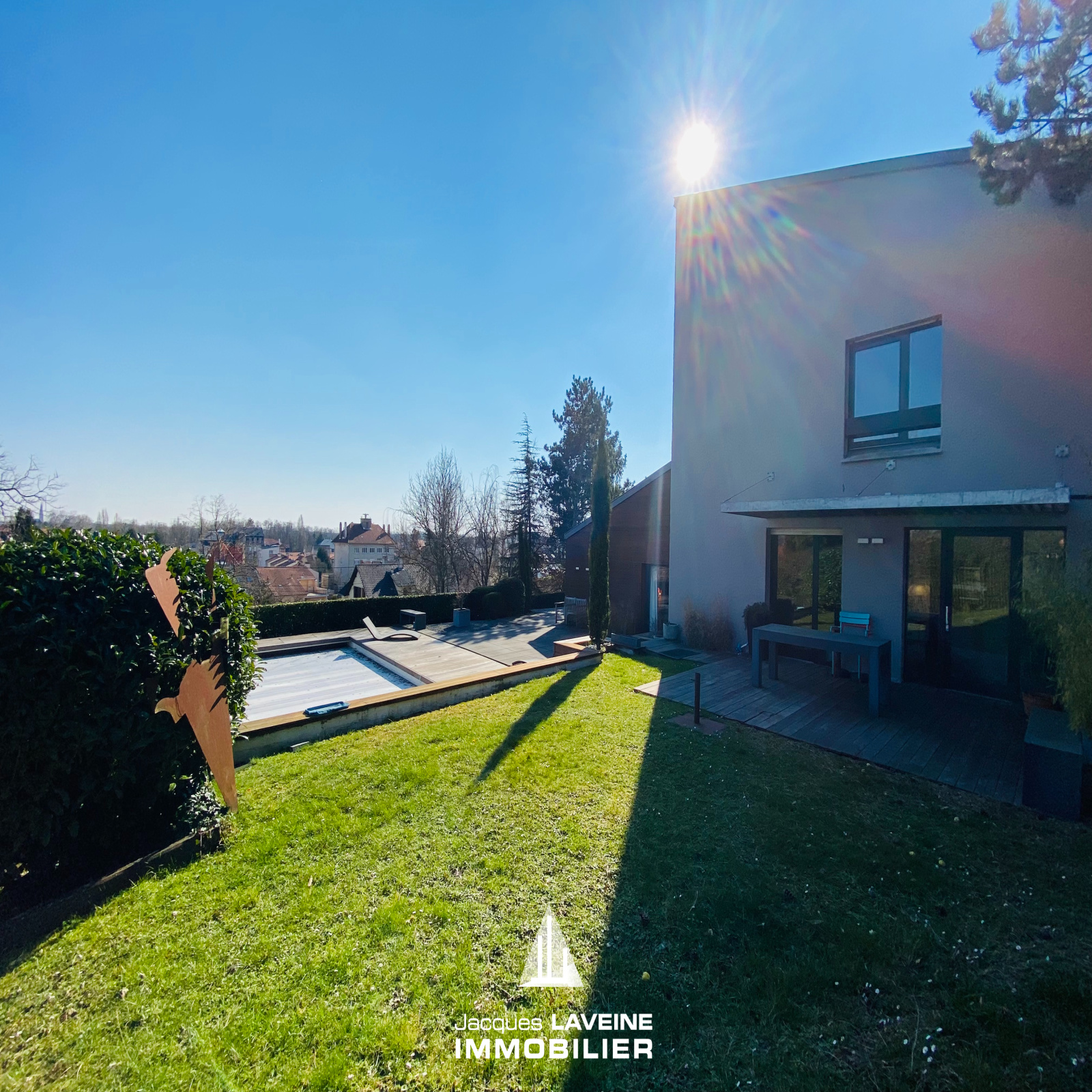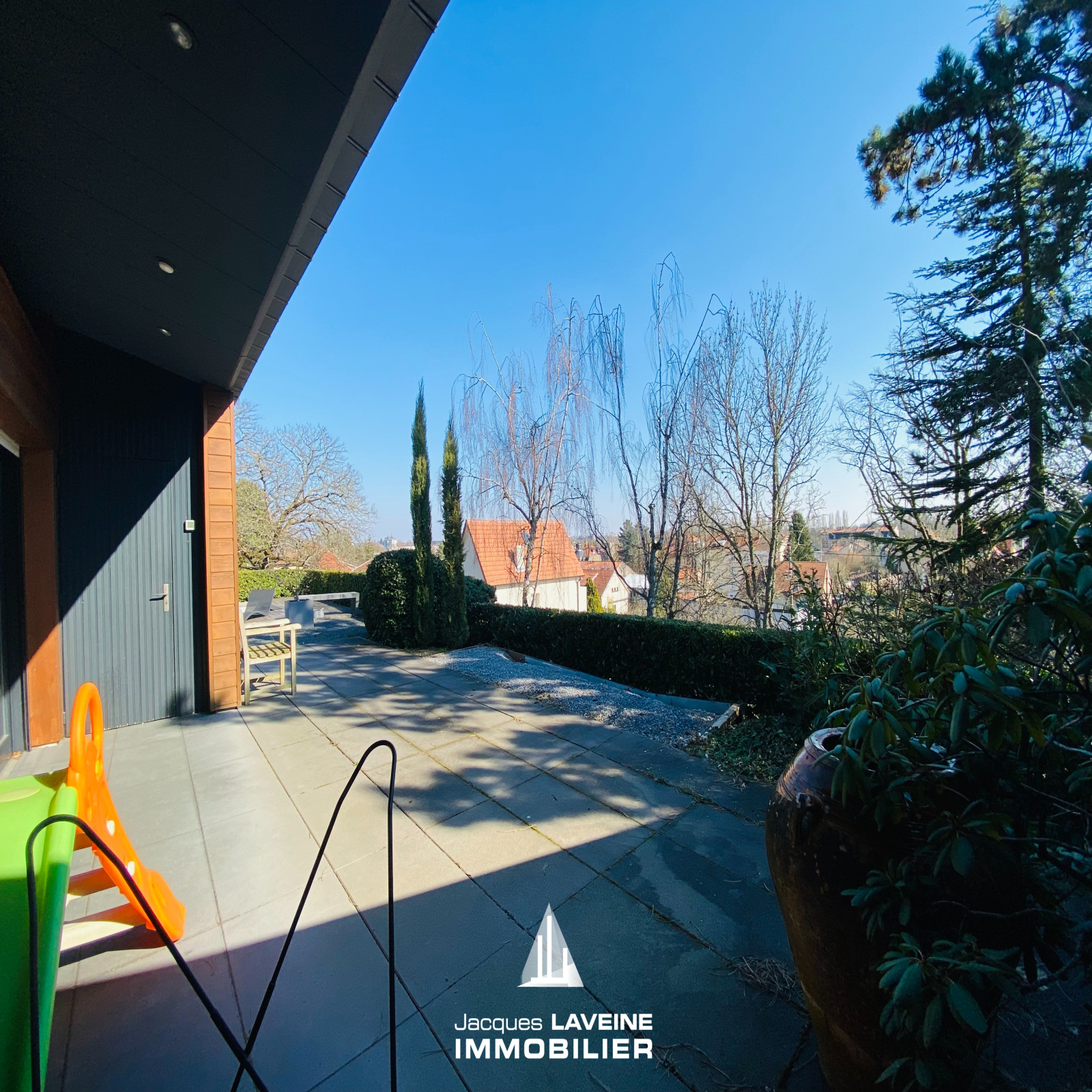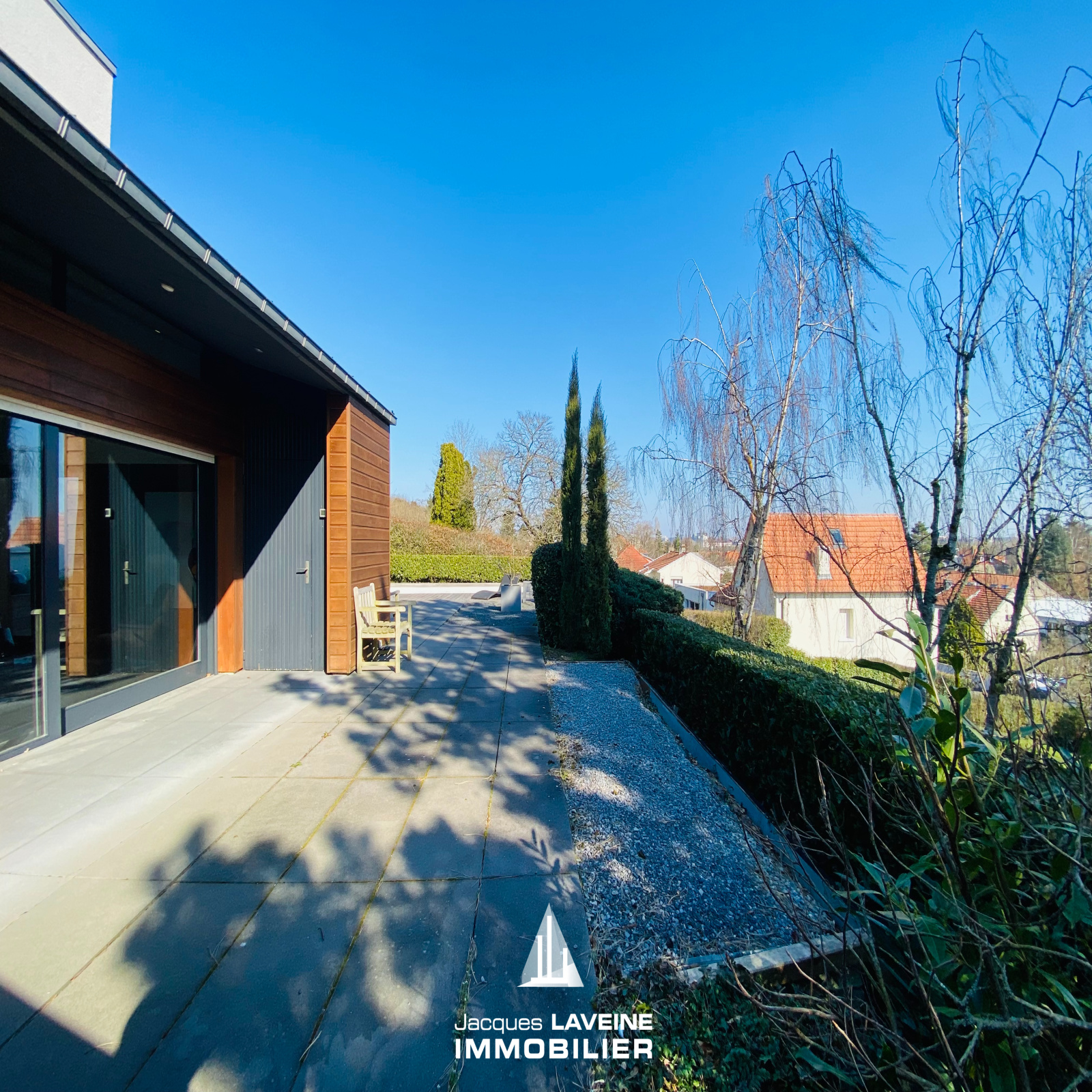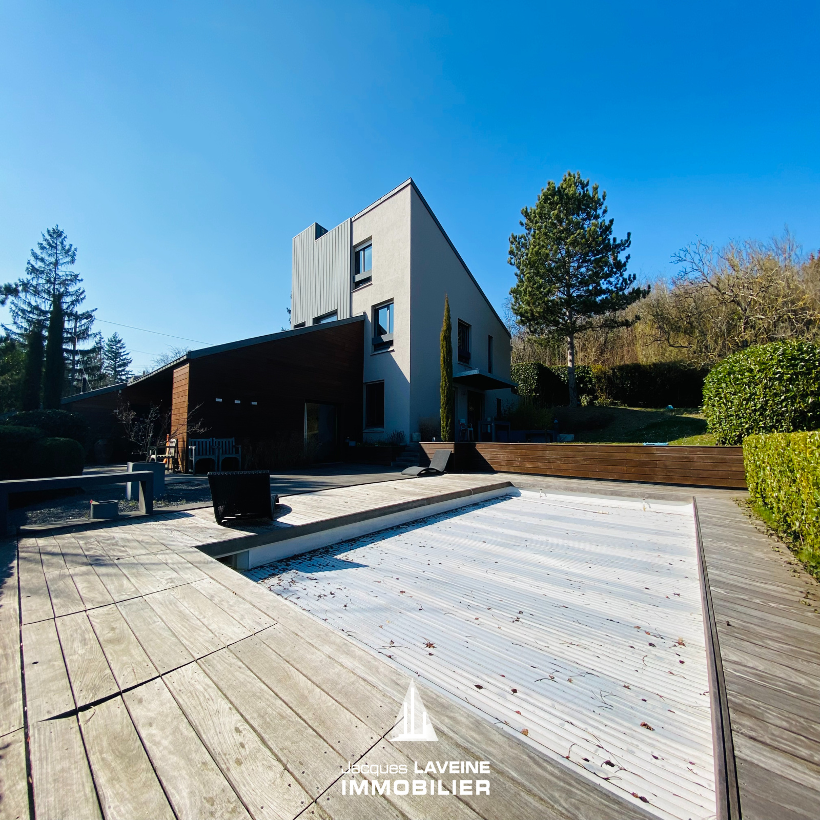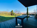 RARISSIME! Sur les hauteurs, au pied du Mont Saint-Quentin! Magnifique Villa d'architecte + de 250m² hab. comprenant en demi-niveaux, entrée avec espace vestiaire, wc, un vaste salon-séjour cheminée au gaz, accès direct sur terrasse par grandes baies vitrées, cuisine équipée et salle à manger accès terrasse, 5 chambres, salle de bains, salle de douche, bureau, grand espace buanderie, cave à vin, garage de 41m², le tout sur terrain sans vis à vis et vue dégagée de + de 25ares (dont 13ares88 constructibles) avec piscine chauffée. A NE PAS RATER!