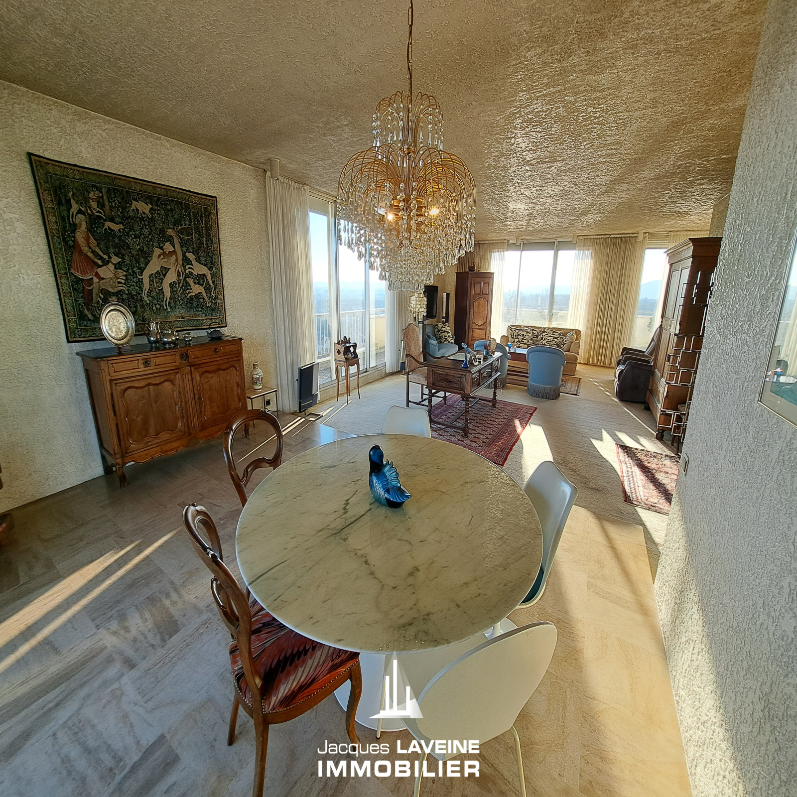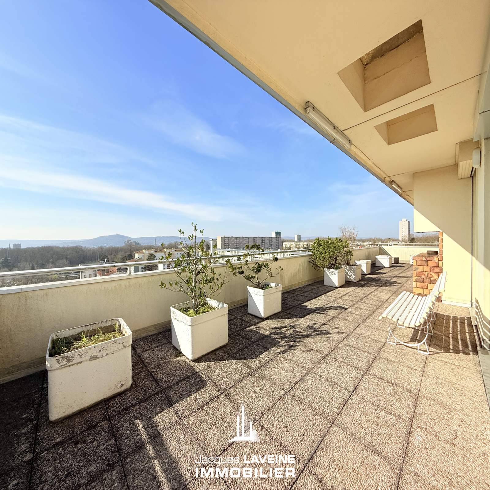 EXCLUSIVITÉ JLI! A 5min du centre ville! Boulevard de l'Europe! Accèdez directement avec l'ascenseur à cet appartement à remettre entièrement aux goûts du jour, niché au dernier étage d'une résidence années 1970 et découvrez une belle entrée, un vaste espace salon-séjour de 74m² avec cheminée, triple exposition et accès direct par baies vitrées sur une terrasse 360° de + de 170m² avec une vue imprenable sur la ville! cuisine séparée équipée, 3 chambres, salle de bains-wc, salle de douche, wc individuels avec lave-mains. Belle hauteur sous plafond. Cave et garage en sous-sol. Des travaux d'isolation au sein de la copropriété sont en cours et payés (toiture) permettant d'améliorer l'étiquette énergétique et diminuer le montant des charges. Chauffage urbain + climatisation.