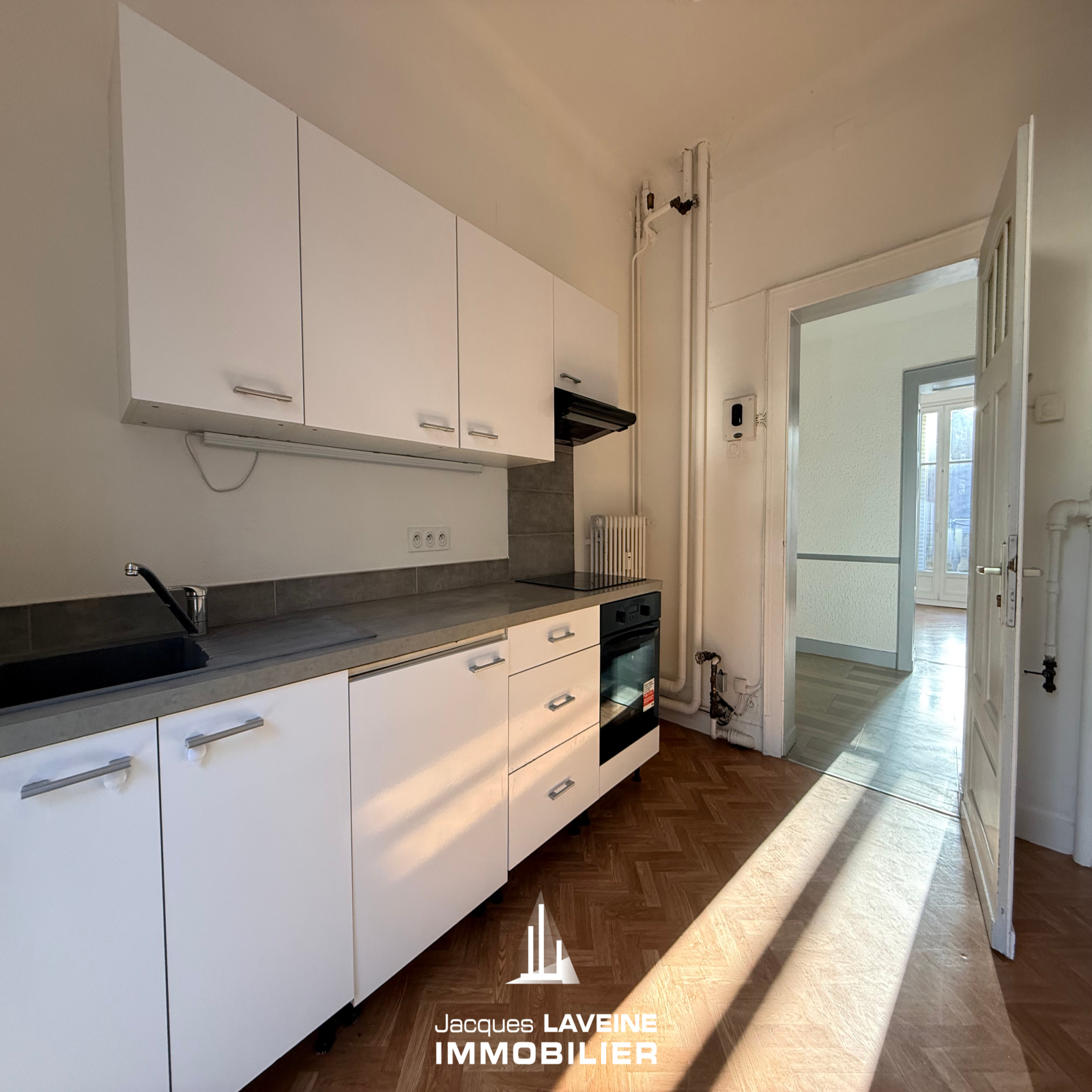 OPPORTUNITÉ JLI! Emplacement de qualité, à proximité immédiate de la Gare et des accès autoroutiers, dans bel immeuble de caractère des années 1920, appartement de 107,70m² au premier étage en parfait état! il comprend une vaste entrée desservant en étoile, un séjour, trois chambres, un bureau, une salle de bain-wc, une cuisine équipée avec accès balcon. Au sous-sol une cave. Double vitrage, chauffage collectif urbain. Belle vue dégagée. A saisir!