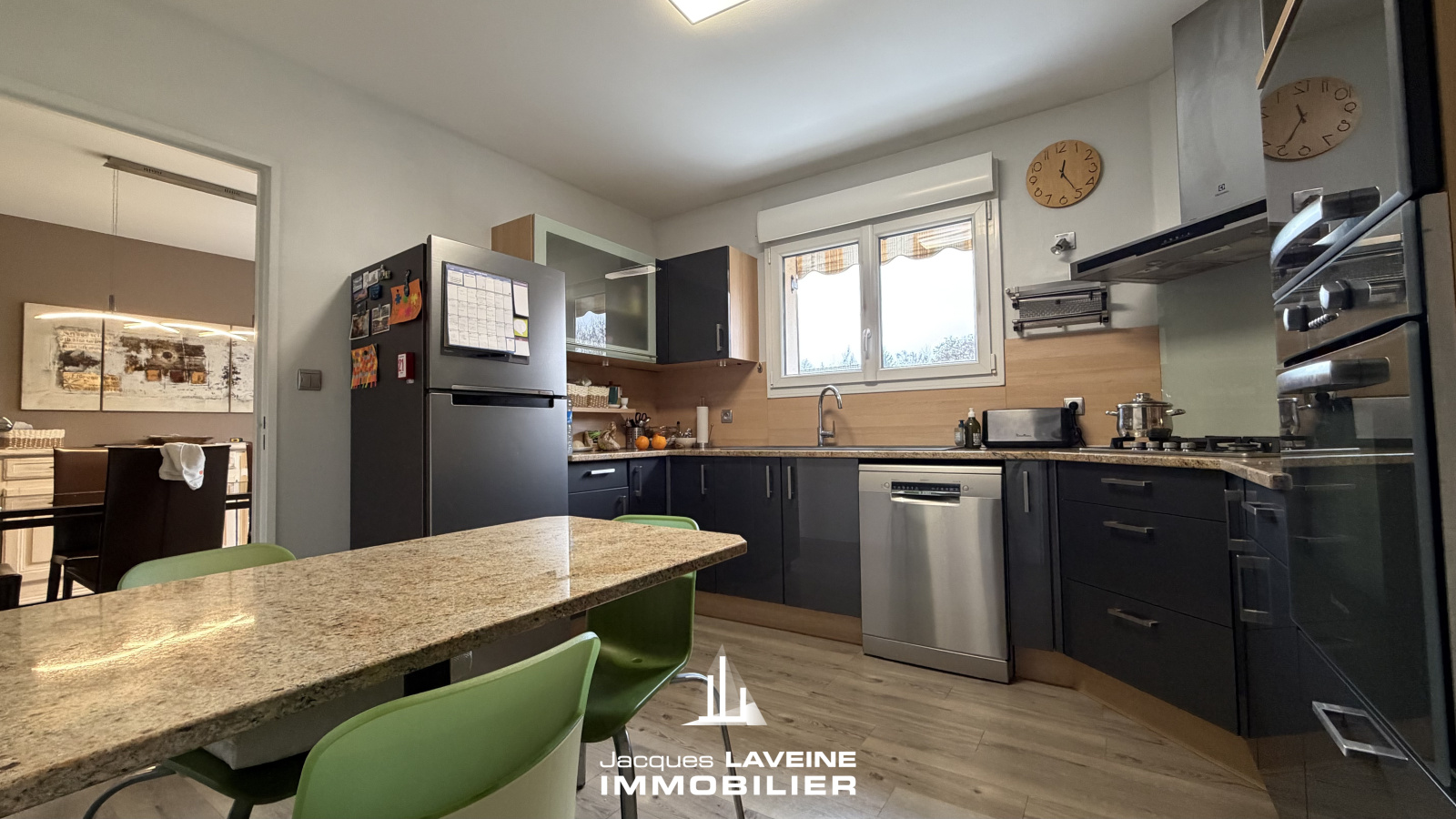 EXCLUSIVITE JLI ! Au calme, proche des transports, belle maison lumineuse en très bon état comprenant au rez-de-chaussée, une entrée, un bureau, garage, chaufferie-buanderie, au 1er demi niveau et de plain-pied, un dégagement, vaste salon-séjour de 36m² ouvert sur une cuisine équipée et accès direct sur terrasse et jardin, un WC, au demi niveau supérieur, un dégagement, 3 belles chambres, une salle de bains avec baignoire et douche. Nombreux rangements. Chauffage central au gaz, double vitrage PVC volets solaires motorisés. Parfait état d'entretien. Terrain 5a62.