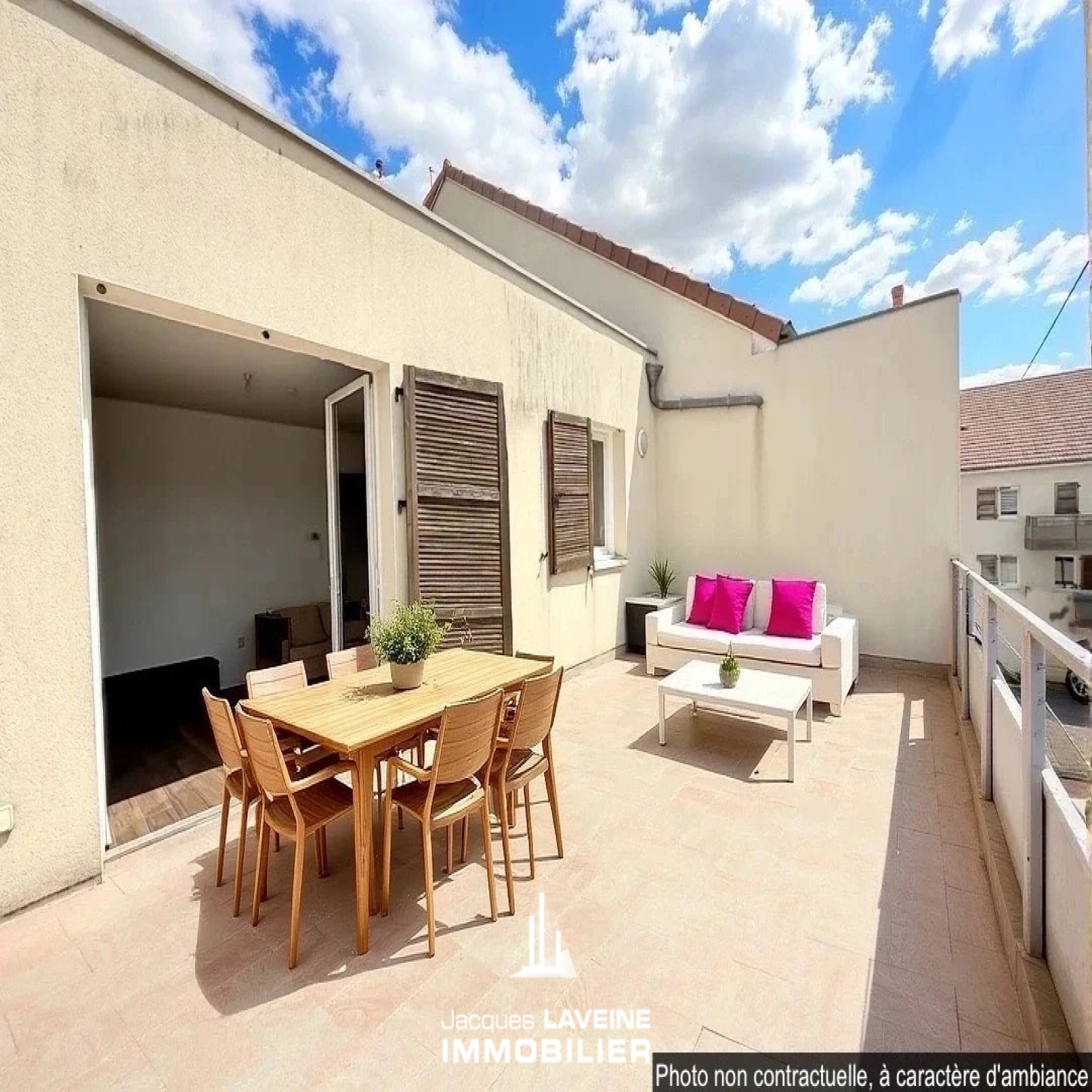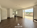 EXCLUSIVITÉ JLI! Proximité commodités, commerces, gare SNCF, dans résidence de 2013, au 2ième et dernier étage avec ascenseur, très lumineux appartement 3 pièces composé d'une entrée avec placards, un grand séjour ouvert sur cuisine intégrée et accès terrasse plein ciel de + de 27m² avec vue dégagée, deux chambres, salle de bains, wc individuels, seconde terrasse de + de 15m². Garage fermé et emplacement de parking privatif inclus. Le tout en parfait état! (Chauffage, eau froide et chaude dans les charges)