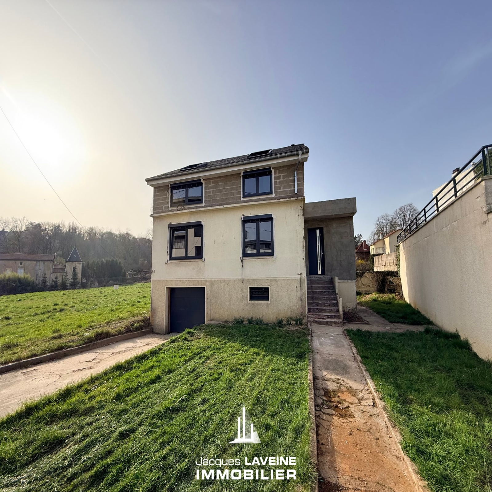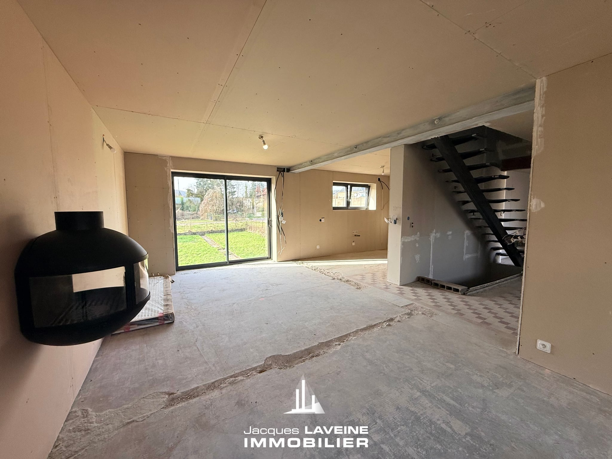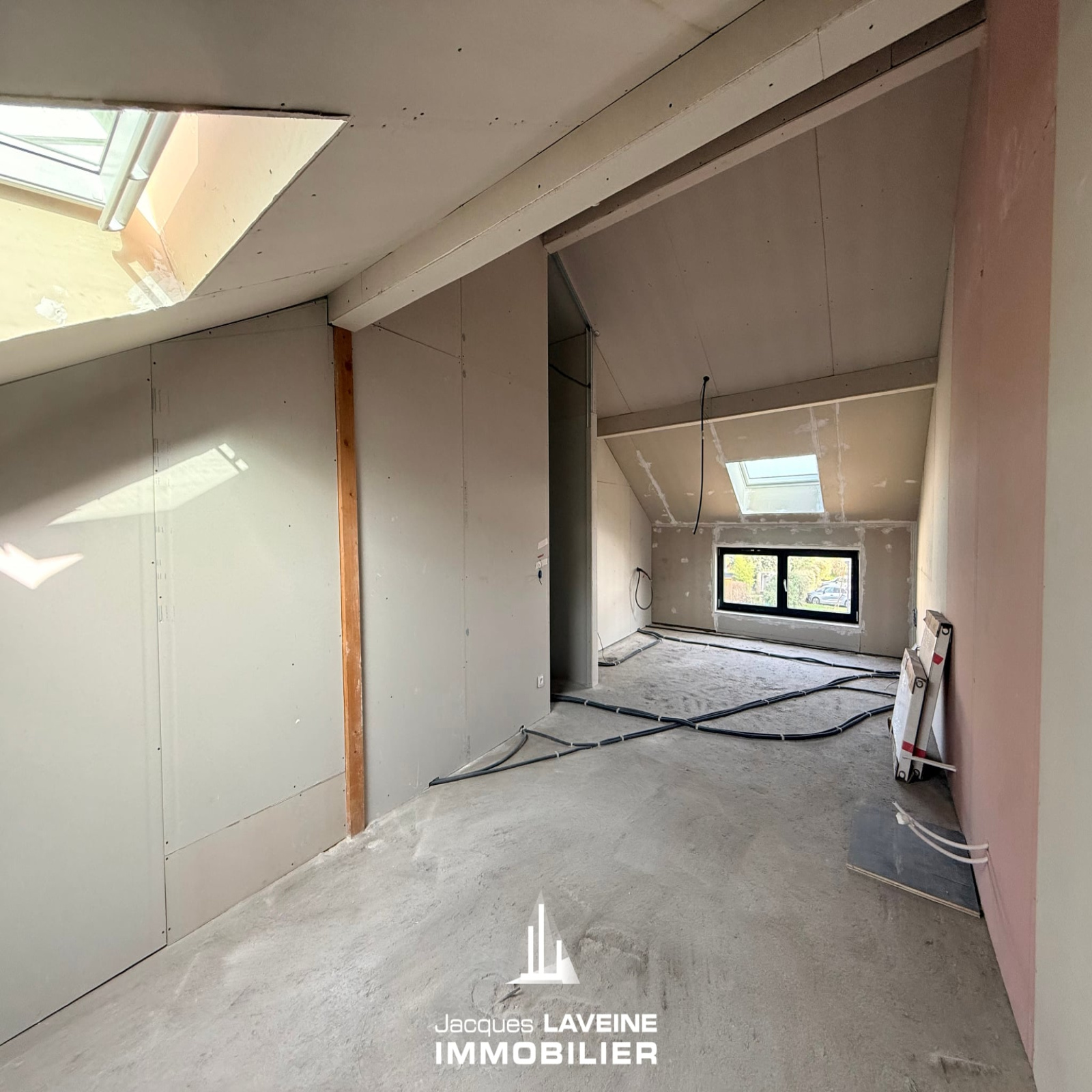 EXCLUSIVITÉ JLI! Au calme et proche de toutes les commodités, venez découvrir cette maison individuelle prête à recevoir des finitions à votre image. Au rez-de-chaussée, un espace bureau ou chambre ainsi qu’une très large et lumineuse pièce de vie avec cuisine ouverte. À l’étage, deux chambres spacieuses et une salle de bain. La maison dispose d’un sous-sol complet avec un grand garage pour 2 Vl. Une porte vous permet un accès à l’arrière de la maison et à un jardin clos de plus de 400 m². Enfin, la plomberie et l’électricité sont déjà dimensionnées pour accueillir la future pompe à chaleur de votre choix.
