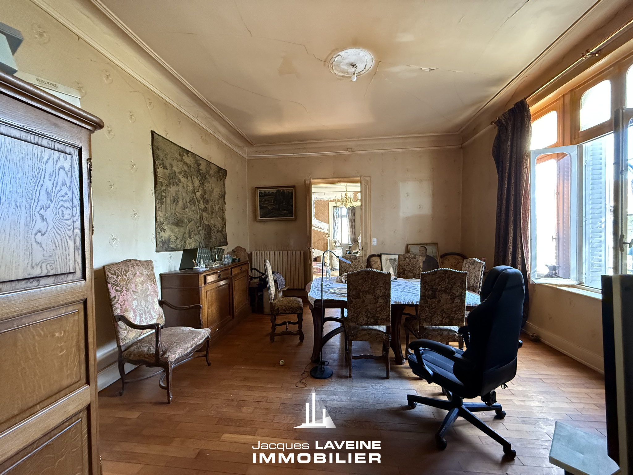 EXCLUSIVITÉ JLI! Proche toutes commodités et à 10min à pieds de la gare sncf. maison bourgeoise 9 pièces à rénover, construction fin du XIX°. Sous-sol de 150m² avec caves, chaufferie. Deux niveaux d'habitation développant 290m² environs, combles aménageables. Grange attenante de 160m² au sol, le tout sur parc clos et arboré de plus de 30ares. Chauffage gaz. Beaucoup de charme (parquets anciens, cheminées, moulures, hauteur sous-plafonds...). Beaux volumes, belle exposition, nombreuses possibilités.